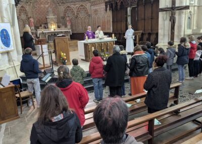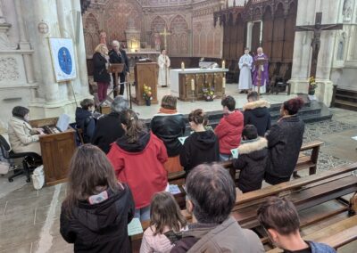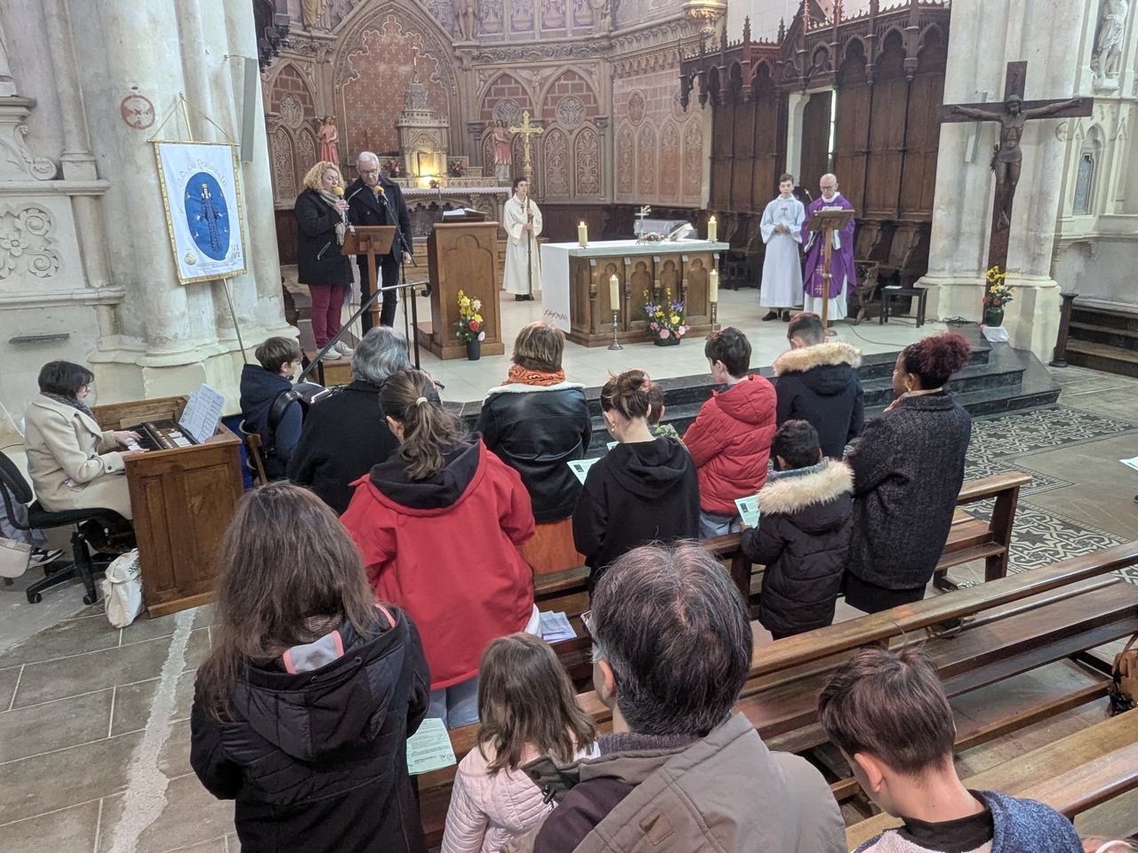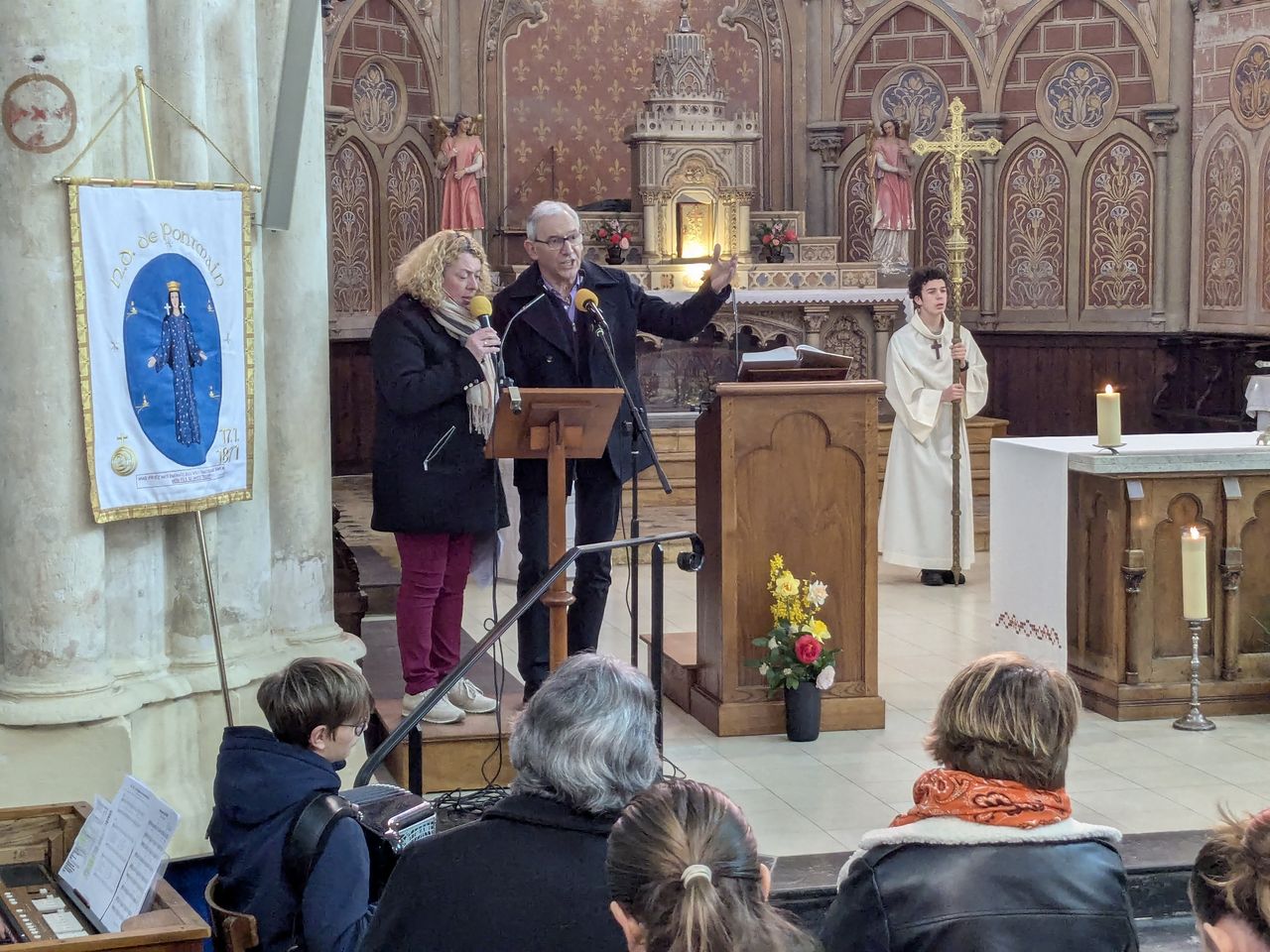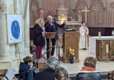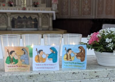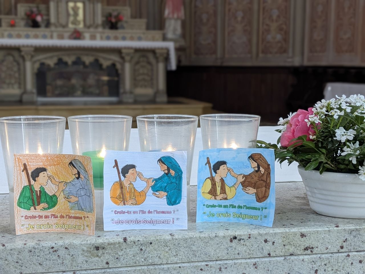 Le père Jean-Luc insiste sur la grâce d’être façonné par la parole de Dieu, lue régulièrement par les fidèles et dans la préparation aux sacrements. Face aux difficultés et aux épreuves de la vie, il nous rappelle que la foi apporte réconfort et l’assurance que Dieu ne nous abandonnera jamais. Chacun a été invité à écrire une prière.